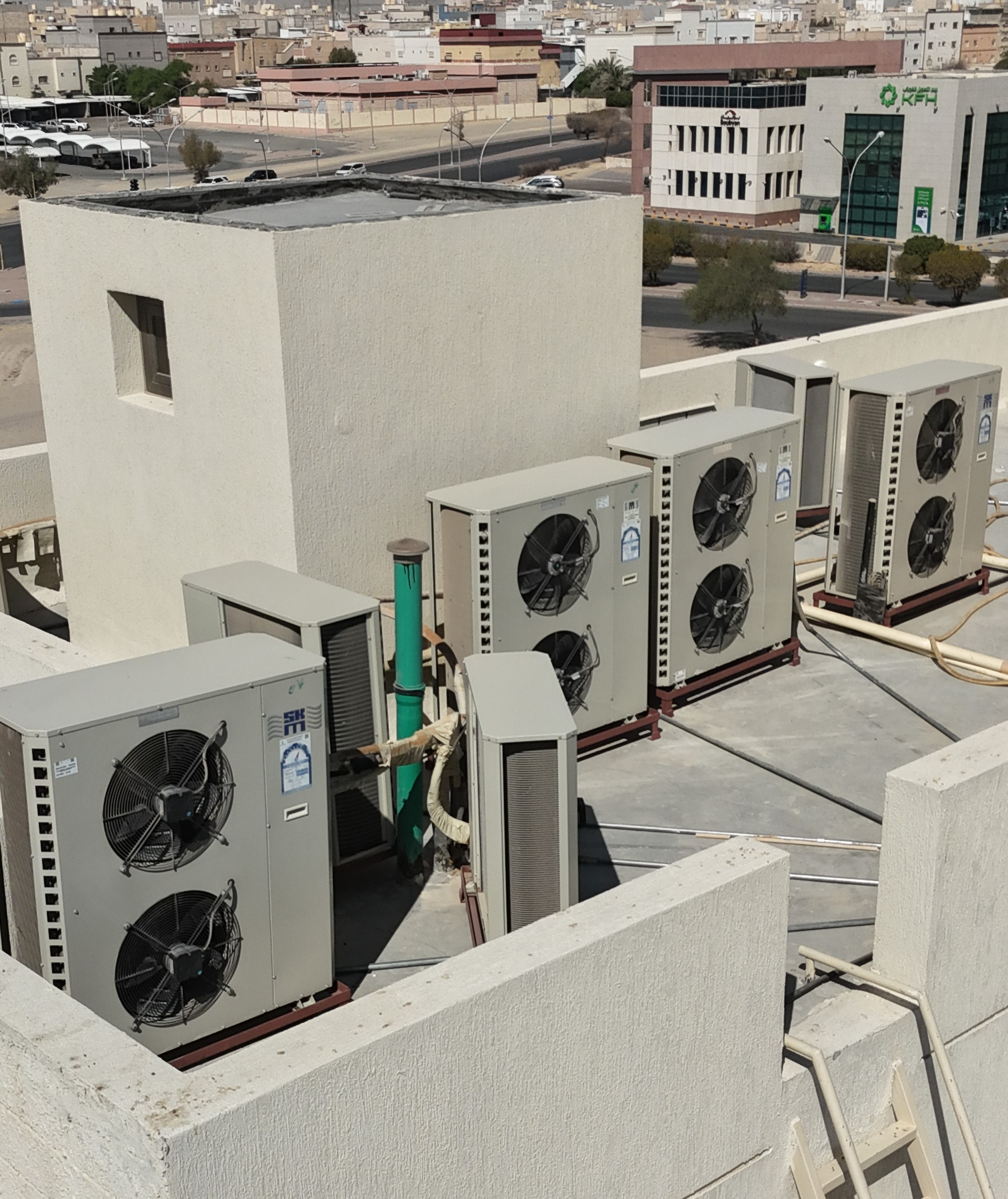 تم توزيع المكائن الخارجية في الموقع بشكل مدروس لضمان أقصى درجات تدفق الهواء ومنع تراكم الحرارة بين الوحدات لاطالة العمر الافتراضي للمحركات.